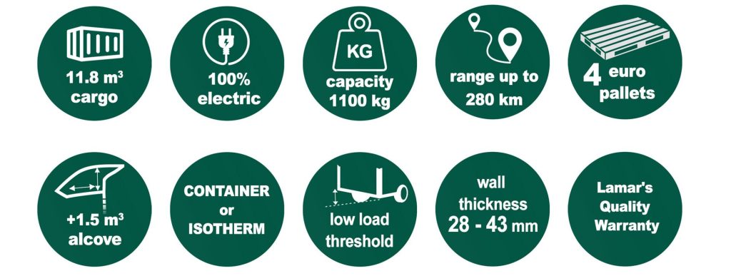 E – LAMBOX S is the ideal solution for the courier industry. With its perfect cargo space, aerodynamic alcove and side fairings, it provides low drag while increasing your company’s reach.