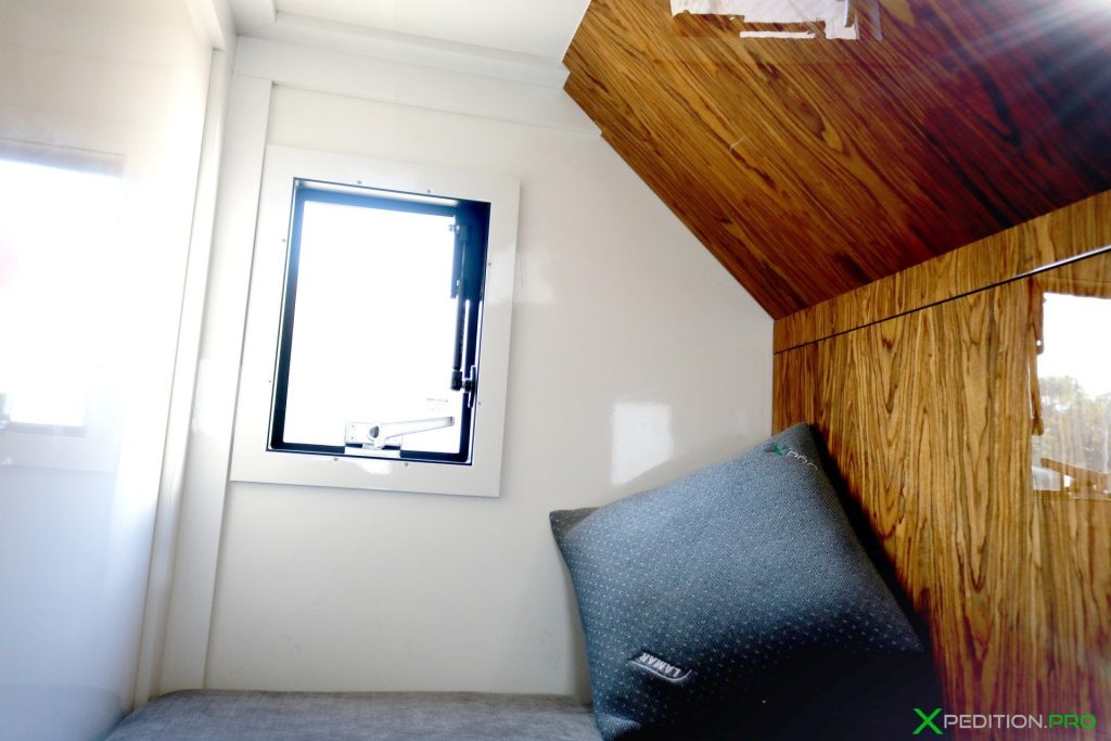 W zależności od ilości użytkowników , oferujemy miejsca sypialne w alkowie nad kabiną auta, i/lub składane łóżko, które za dnia pełni rolę ekskluzywnej kanapy.