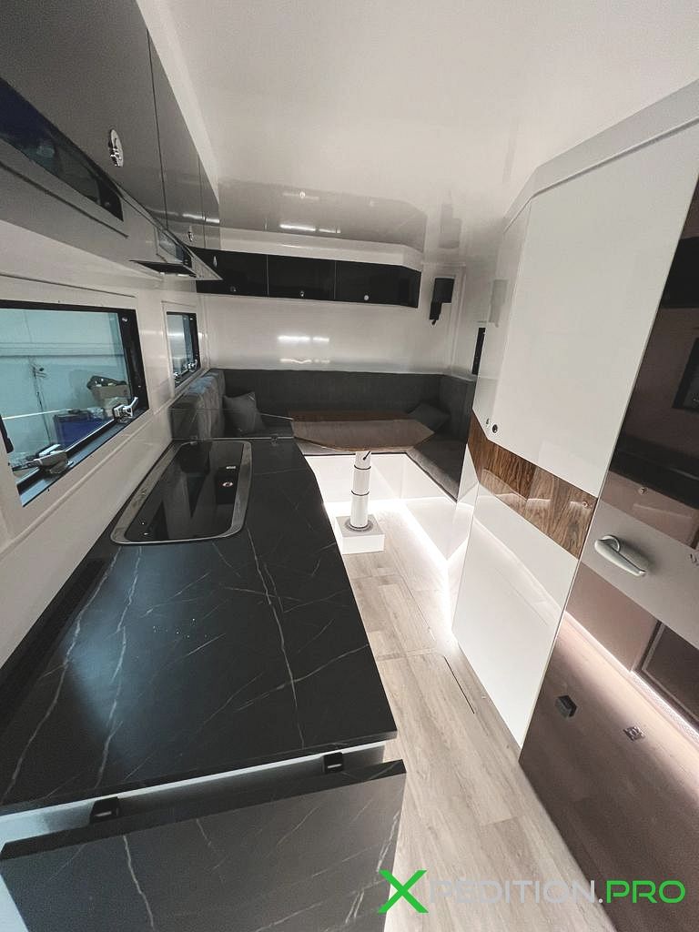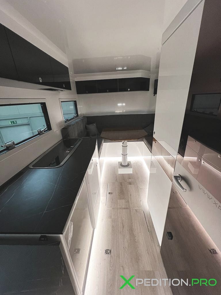 Poza tym LAMbox świetnie nadaje się do aranżacji wnętrza. Nasze realizacje tworzymy wraz z klientami. I tak w naszych kamperach często tworzymy dodatkowe garaże dla rowerów, motocykli czy quadów. Klient może zamówić u nas również zabudowę meblową, w pełni funkcjonalną kuchnię, czy pełnowymiarową kuchenkę.